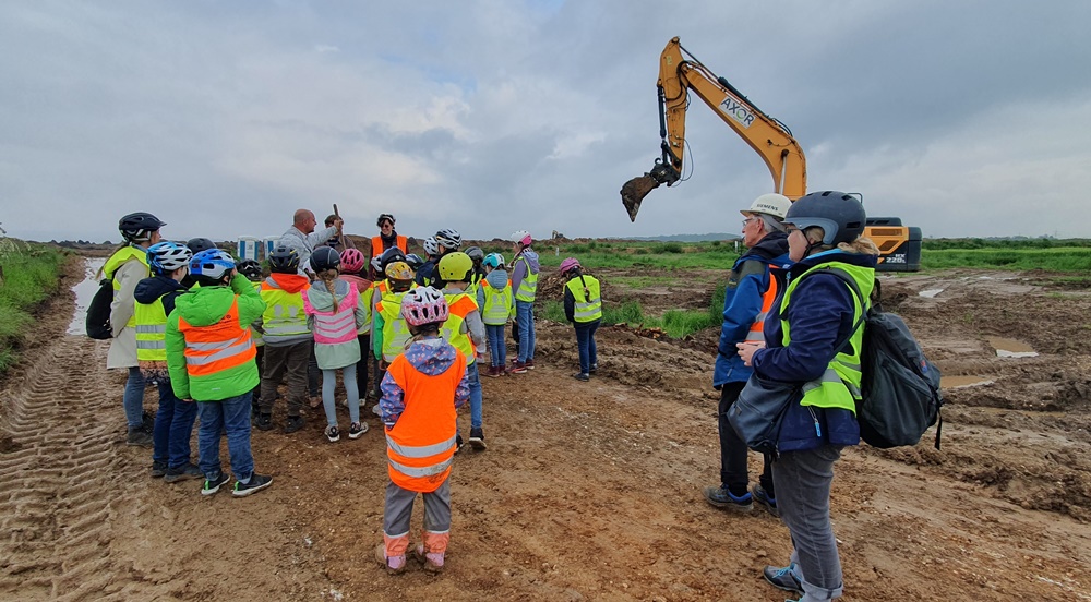 Daniel Keller und Roger Fabeck von der RWE unterstützen dankenwerterweise die Besuche der beiden Klassen und unterbrachen sogar den Baustellenbetrieb. Die Kinder wurden vor Ort von einem hilfsbereiten RWE-Mitarbeiter begleitet.